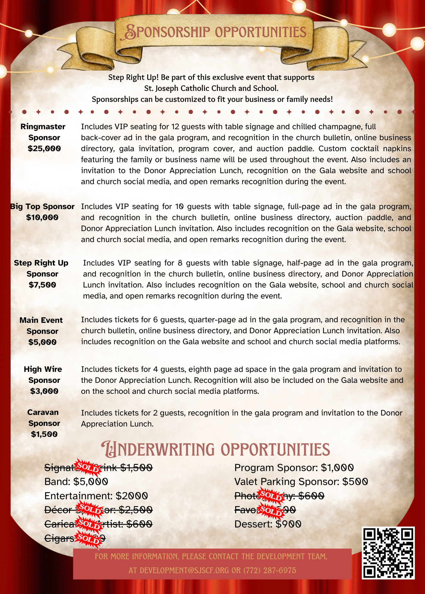 Step right up for an unforgettable evening Under the Big Top with St. Joseph Catholic Church & School! Join us for our spectacular Gala on Saturday, February 28, 2026, from 6:00 PM to 11:00 PM at the stunning Hutchinson Shores Resort & Spa. Prepare for a dazzling night filled with a delicious served dinner, signature cocktails from our open bar, and thrilling silent and live auctions. From magical moments to lasting memories, it’s all happening under one extraordinary roof—don’t miss your chance to be part of the excitement!